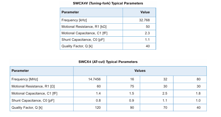 | Frequency | 32.768 kHz for SWCX4V 14 MHz to 100 MHz for SWCX4 | ||